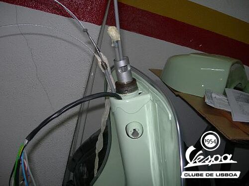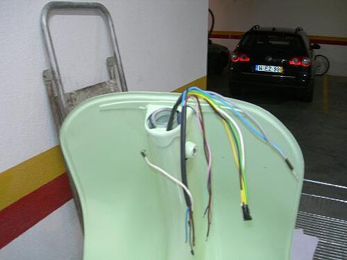 continuando, ontem á noite como não me aguentei ainda montei a instalção electrica e passei os cabos, foi uma tarefa que se revelou muito mais fácil do que pensei (demorei cerca de 20 minutos), utilizei um cabo antigo para servir de guia, ou melhor usei dois para conseguir sacar os fios para o travão de trás, e foi sempre a aviar