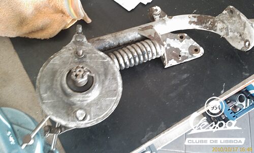 Tens que sacar o conjunto onde apertam as maxilas do traoes fora, verificar os veios, "nós" e rolamentos, verificar copo de lubrificação, mandar decapar e metalizar / zincar / galvanizar, montar tudo novamente com as peças novas que sejam precisas, lubrificar e montar na Vespa.