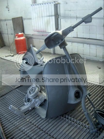 Fui buscar à metalização a Vespa e dum modo geral fiquei satisfeito com o trabalho feito : Deram jacto, metalização e outra cena qualquer tipo "epoxy qualquer coisa" ; Deram foi metalização nalgumas peças de alumínio que não era preciso e que dificulta a montagem mas tudo bem. Para o próximo restauro já sei separo tudo em caixotes e explico o que leva jacto, o que leva metalização e por aí fora.